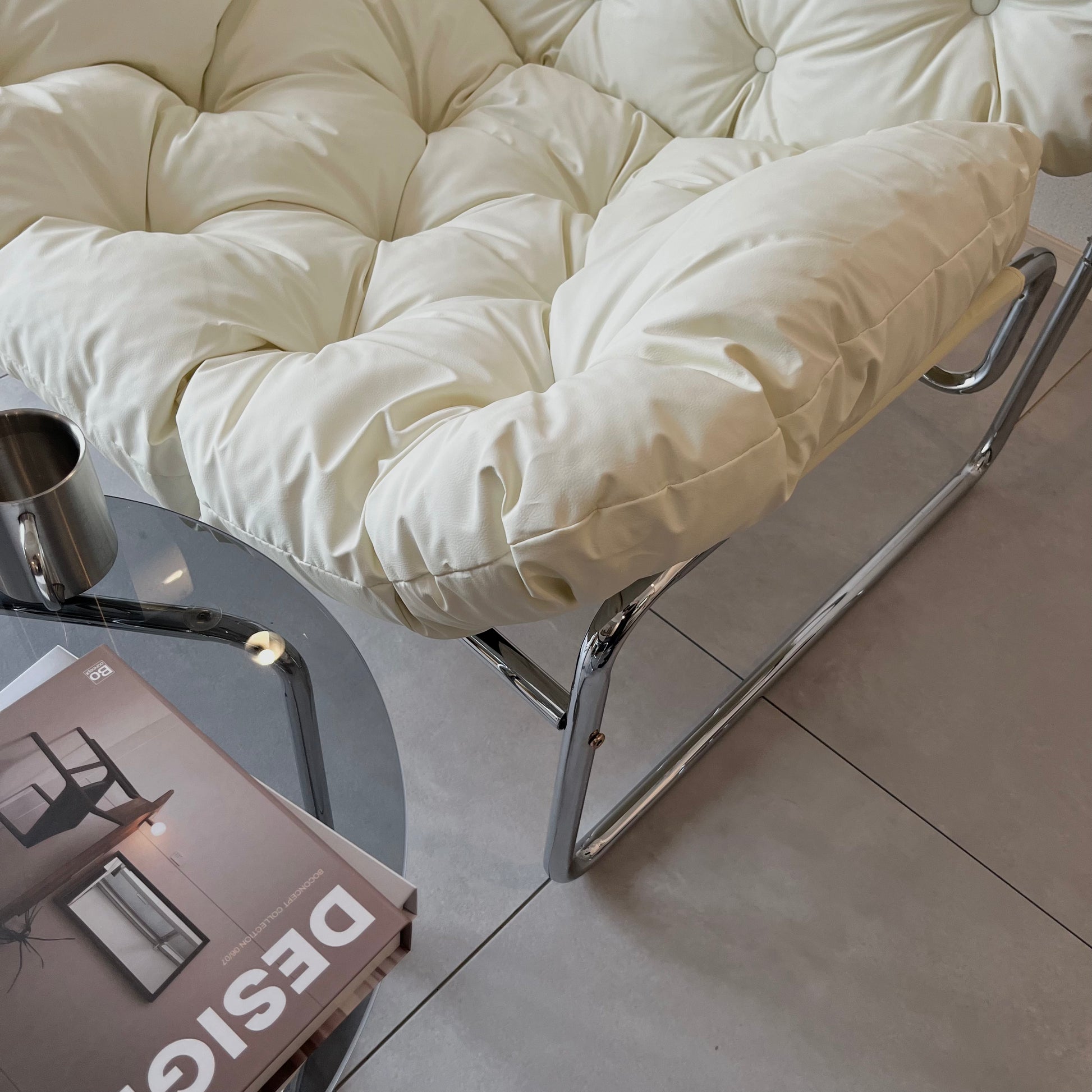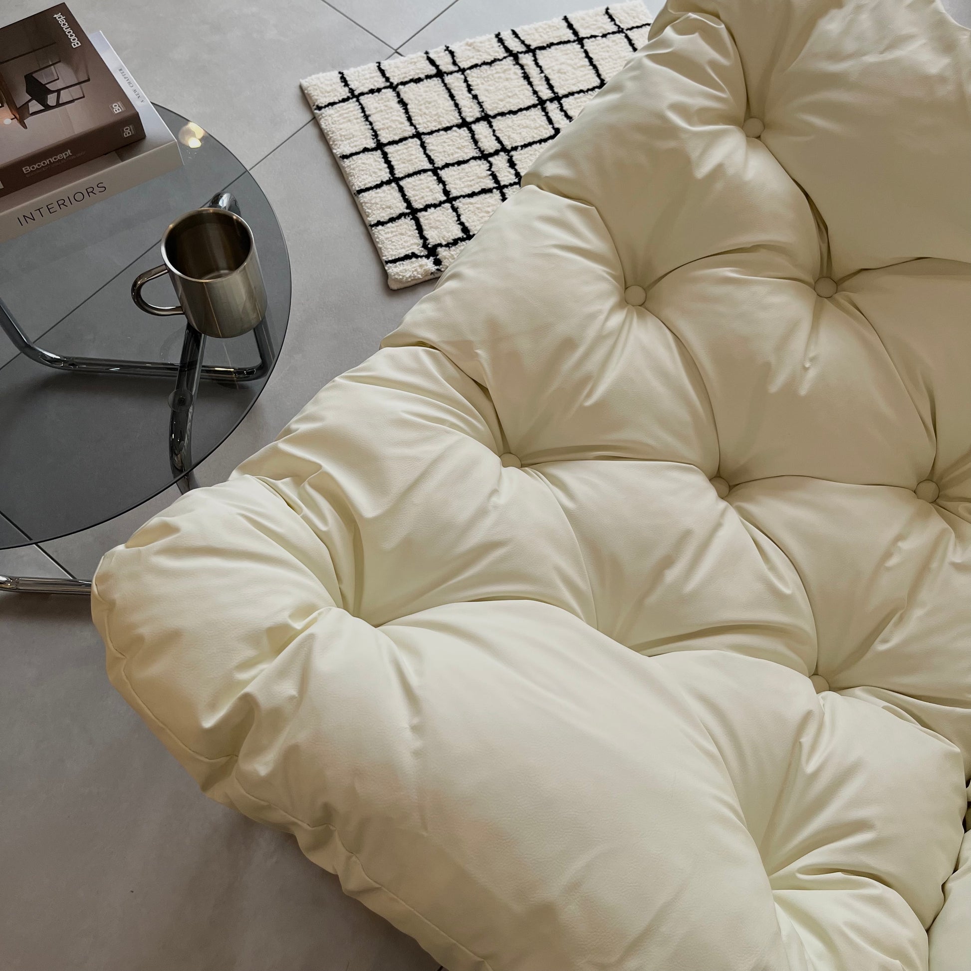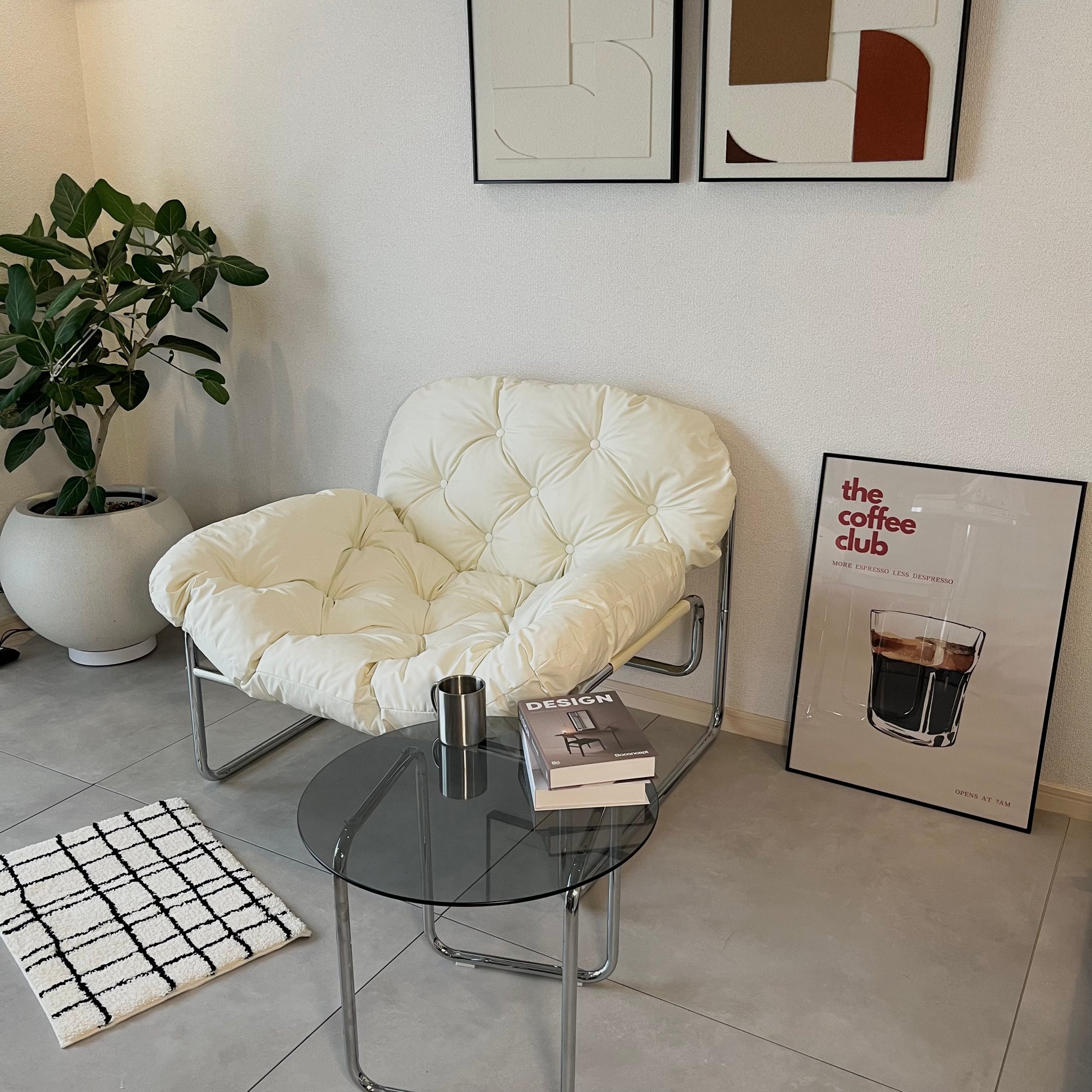 ふかふかの座り心地で、ゆったりとくつろげるラウンジチェア。フェイクレザーの質感が空間にほどよい上品さを添え、モダンなインテリアにも自然に馴染みます。丸みのあるフォルムとシルバーの脚が、シンプルながら洗練された印象を演出。置くだけで空間の雰囲気が引き締まります。